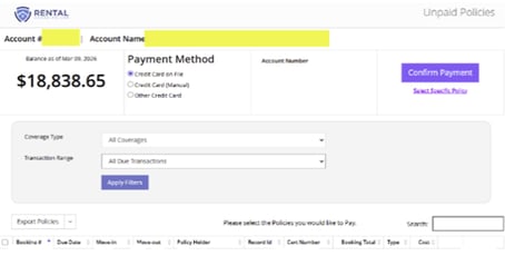 Depending on what has been filtered, will automatically be selected. You can confirm this payment with the payment method on file.